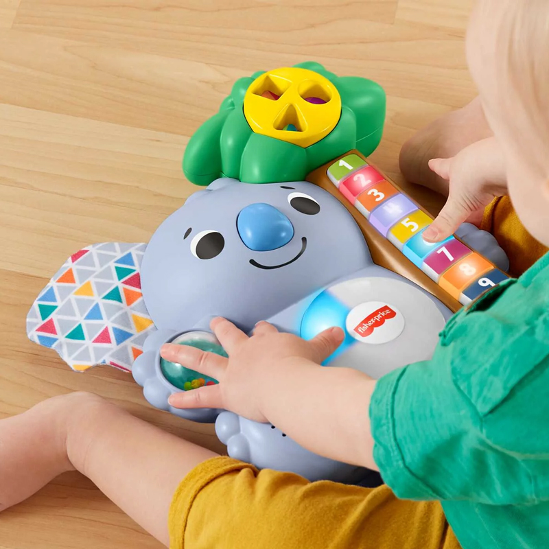 • 跟著可愛的費雪無尾熊,一起學習數數與形狀!轉轉形狀齒輪、按下樹幹上的數字排列,就會有美妙的音樂伴奏陪著寶寶遊玩,多重機關,刺激感官發展
