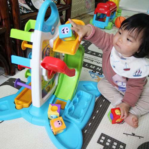 媽咪分享 現在兄妹倆喜歡把玩具放高高滑下,掉下來會有好聽音樂。哥哥愛把球放進籃框,聽到音樂好有成就感